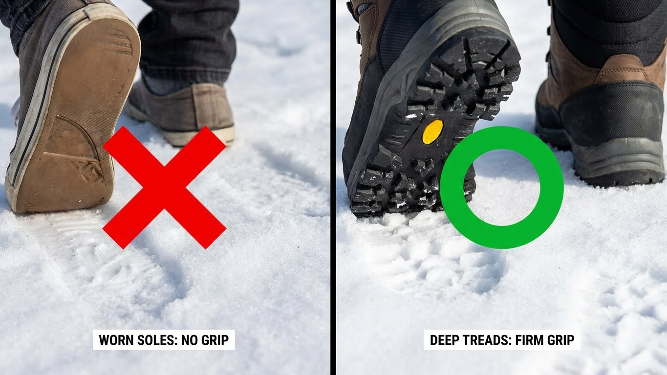 - 밑창이 닳고 닳은 운동화: "편하다"는 이유로 오래 신은 신발, 빙판길에선 스케이트 날과 같습니다.